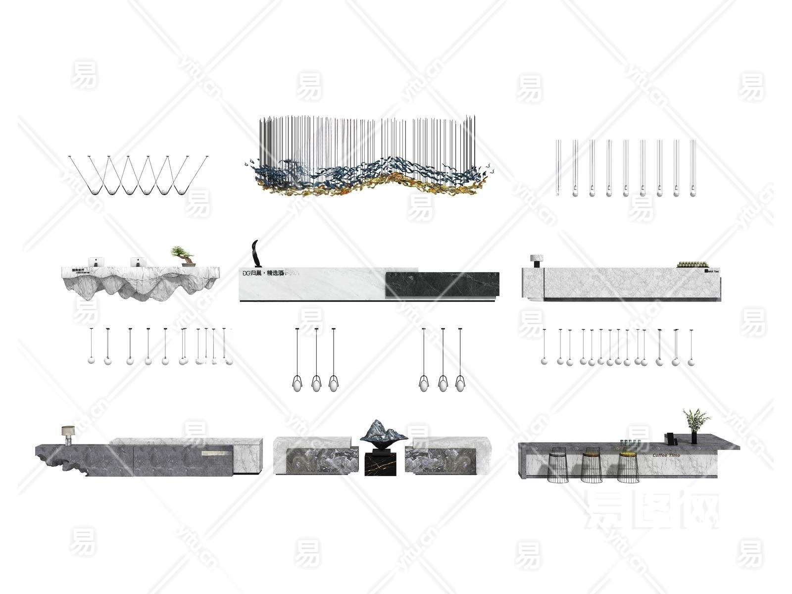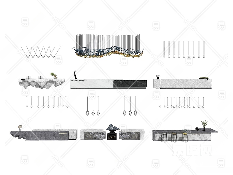 现代接待台3D模型下载