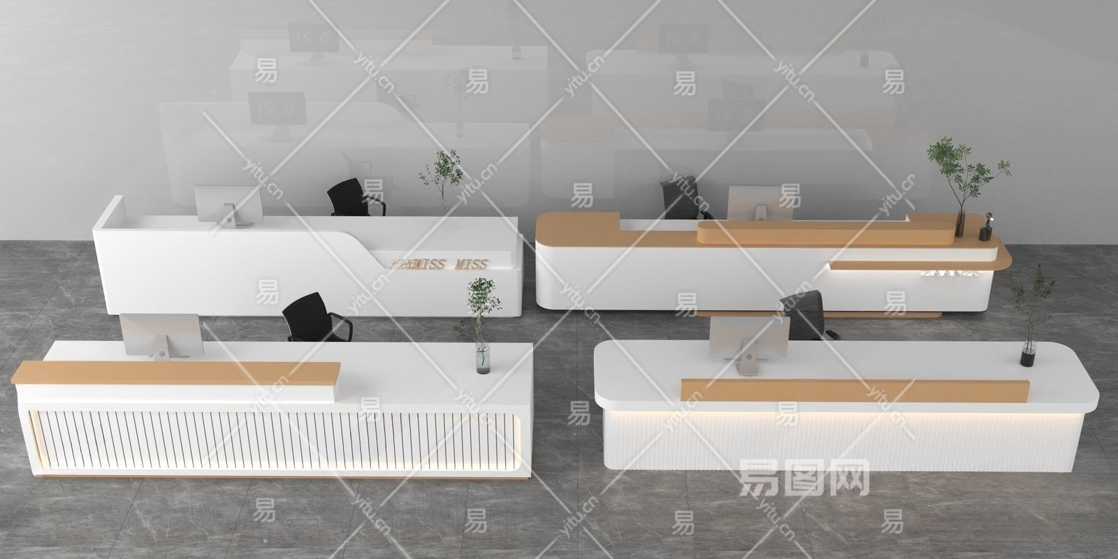 现代接待台3D模型下载