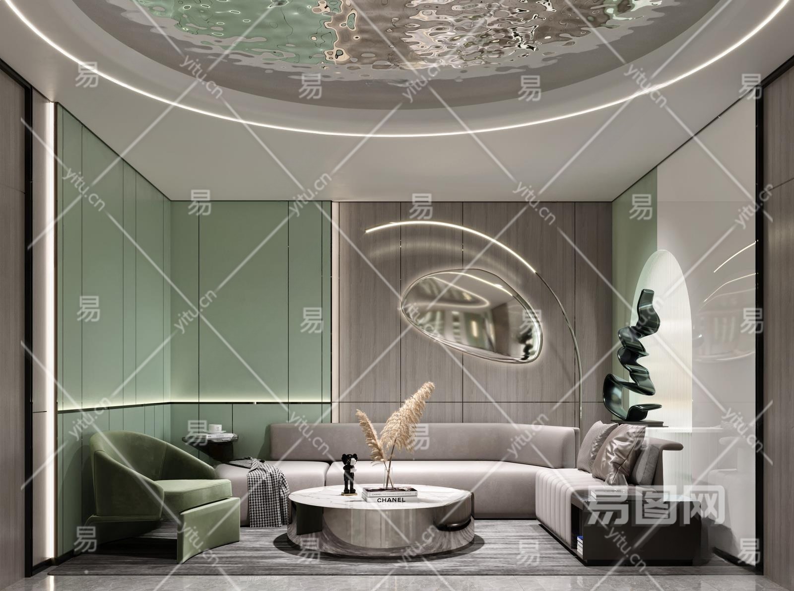新中式公司休息区3D模型下载