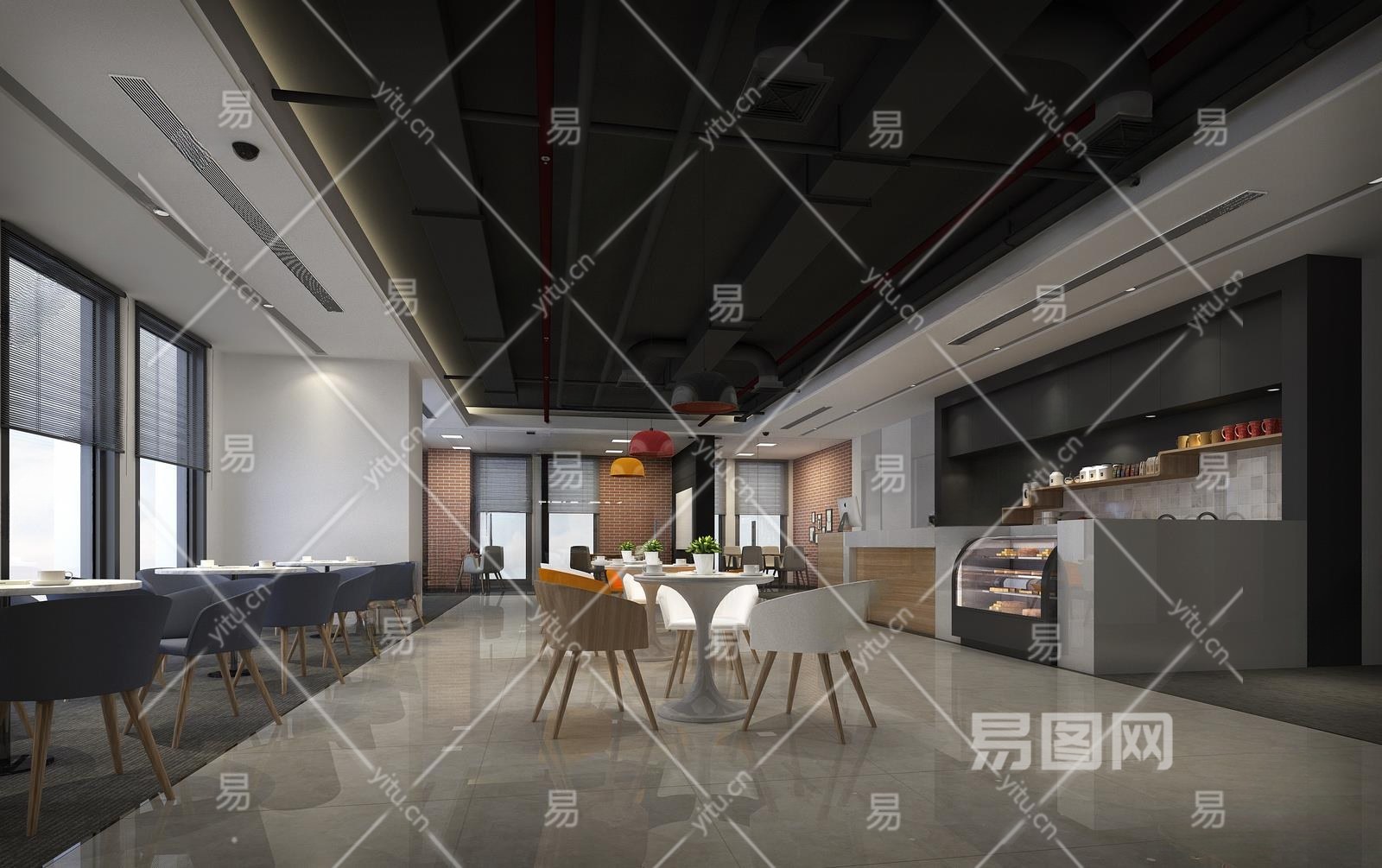 现代办公休闲空间3D模型下载