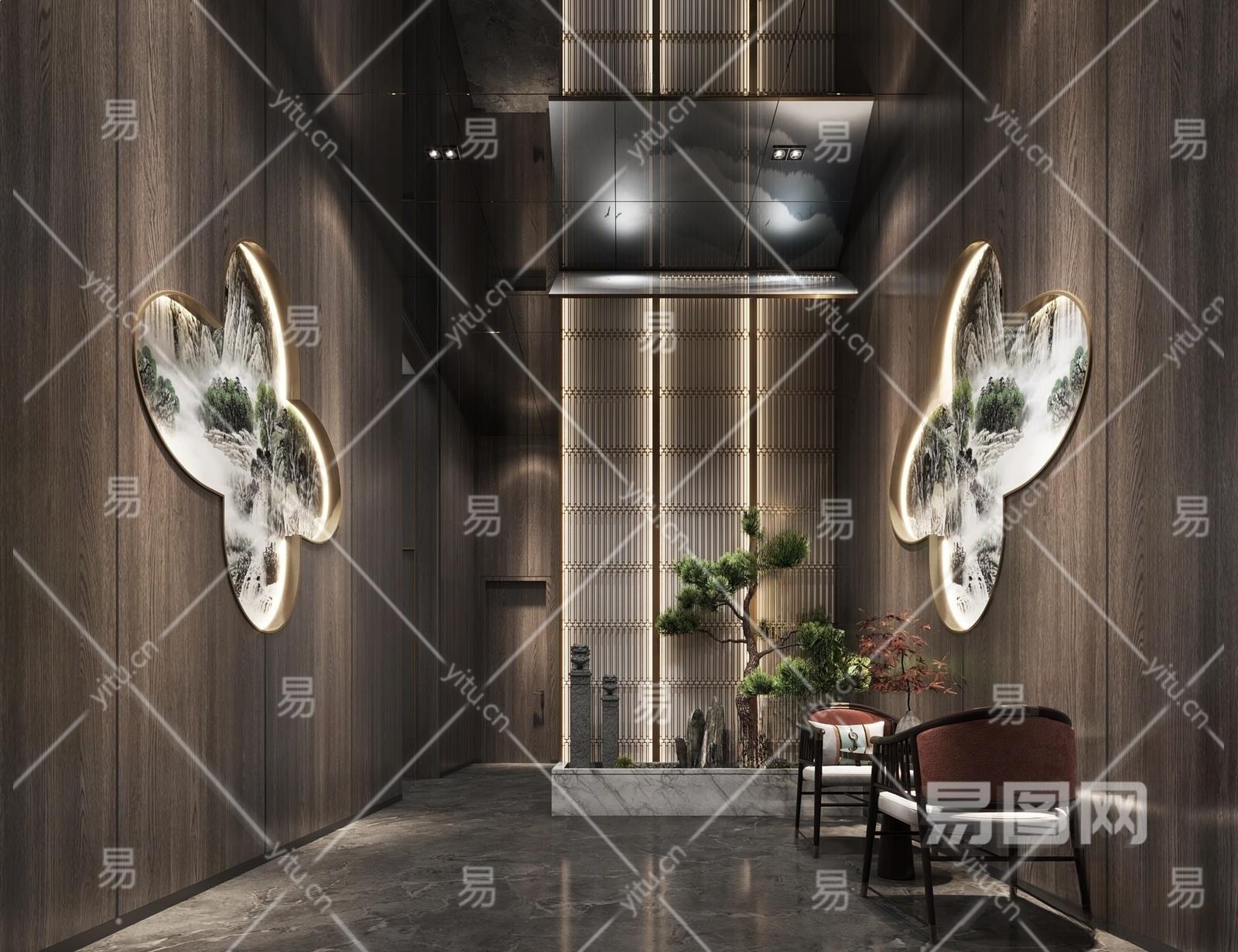 新中式酒店休息区3D模型下载