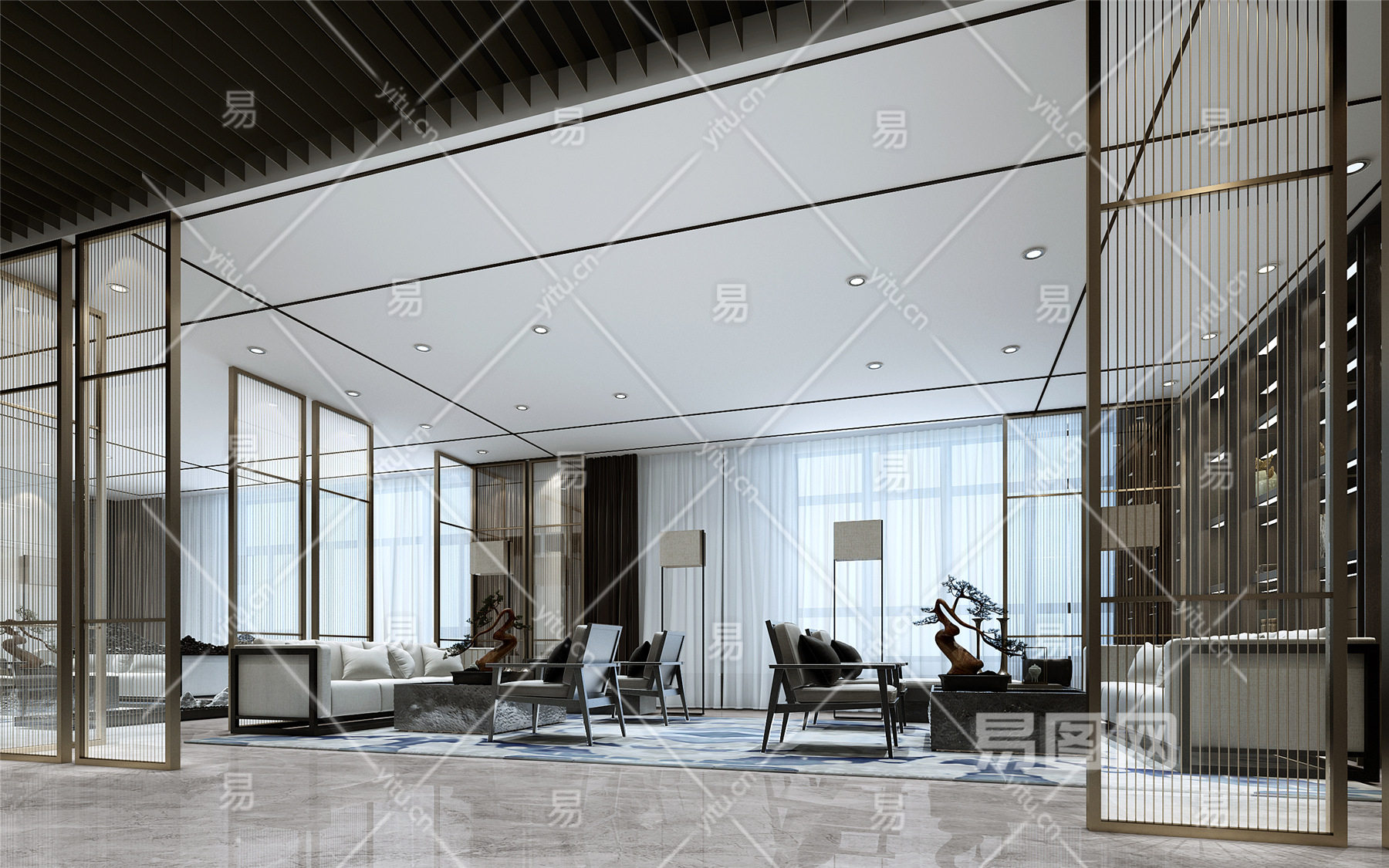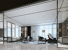 新中式售楼处 洽谈区 端景 过道