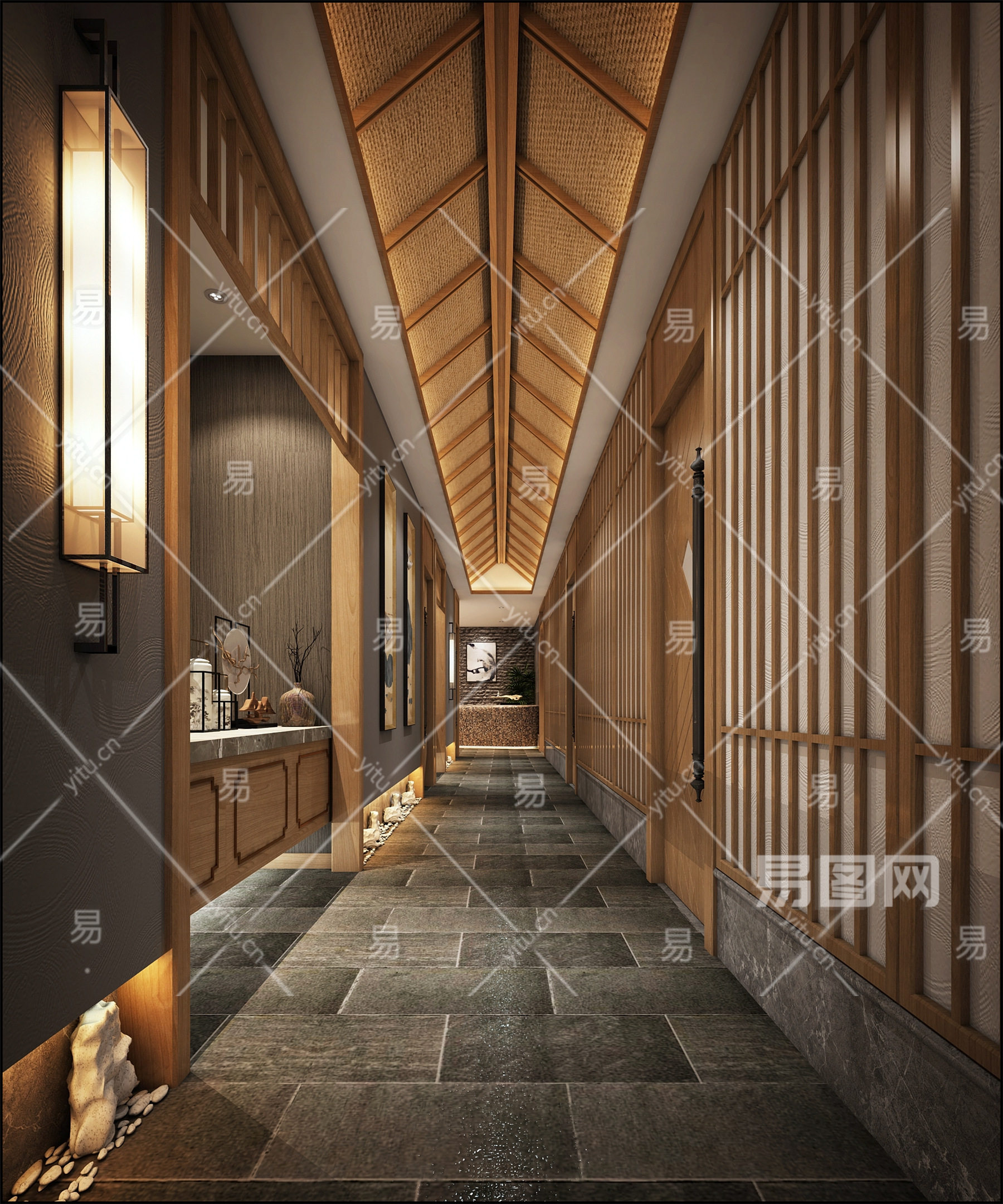 当前的位置:首页 > 3D模型 > 通用空间 > 走廊 > 新中式酒店玄关过道 民宿禅意走廊 木质隔断 景观灯 号码牌 壁灯