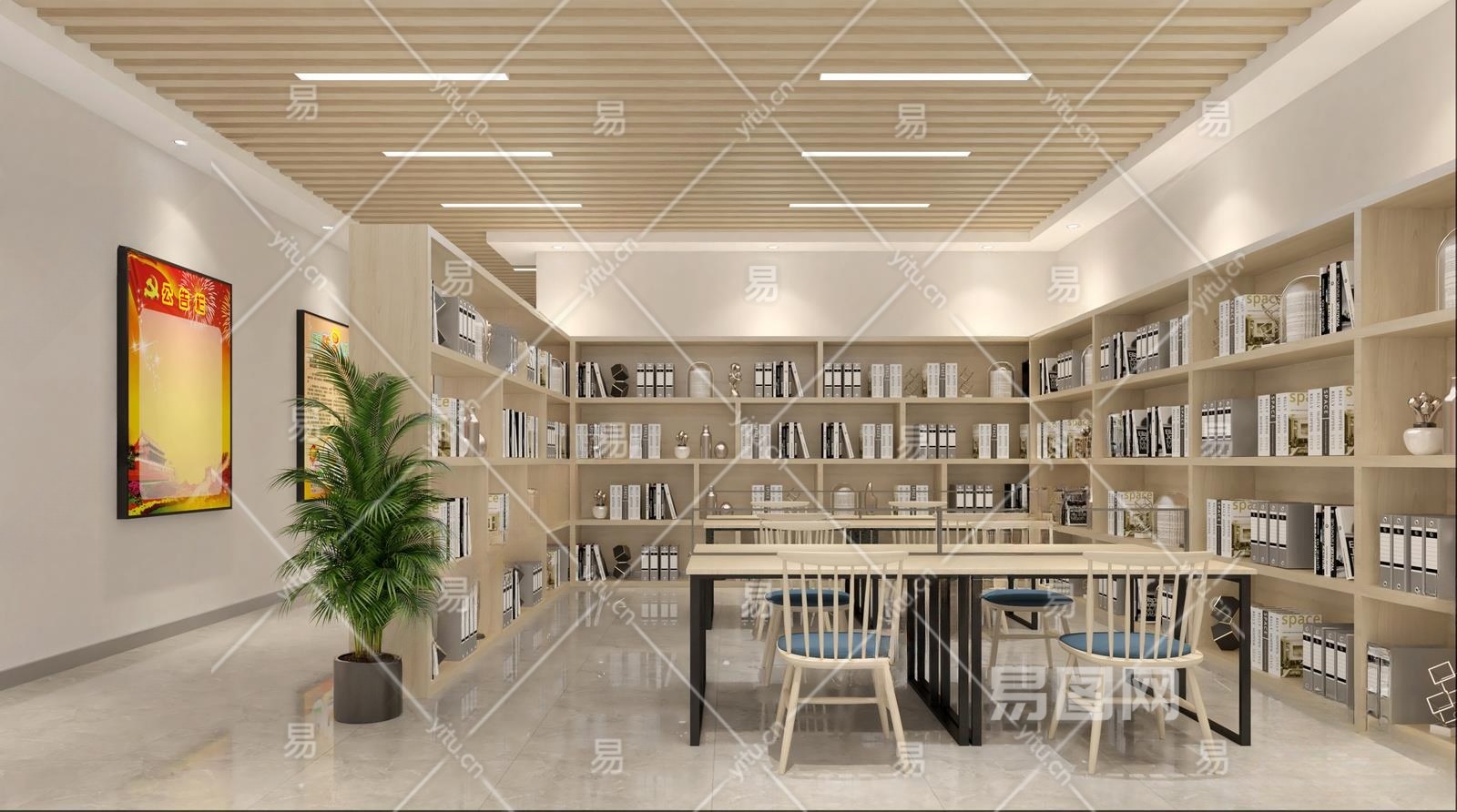 现代图书馆阅览室3D模型下载
