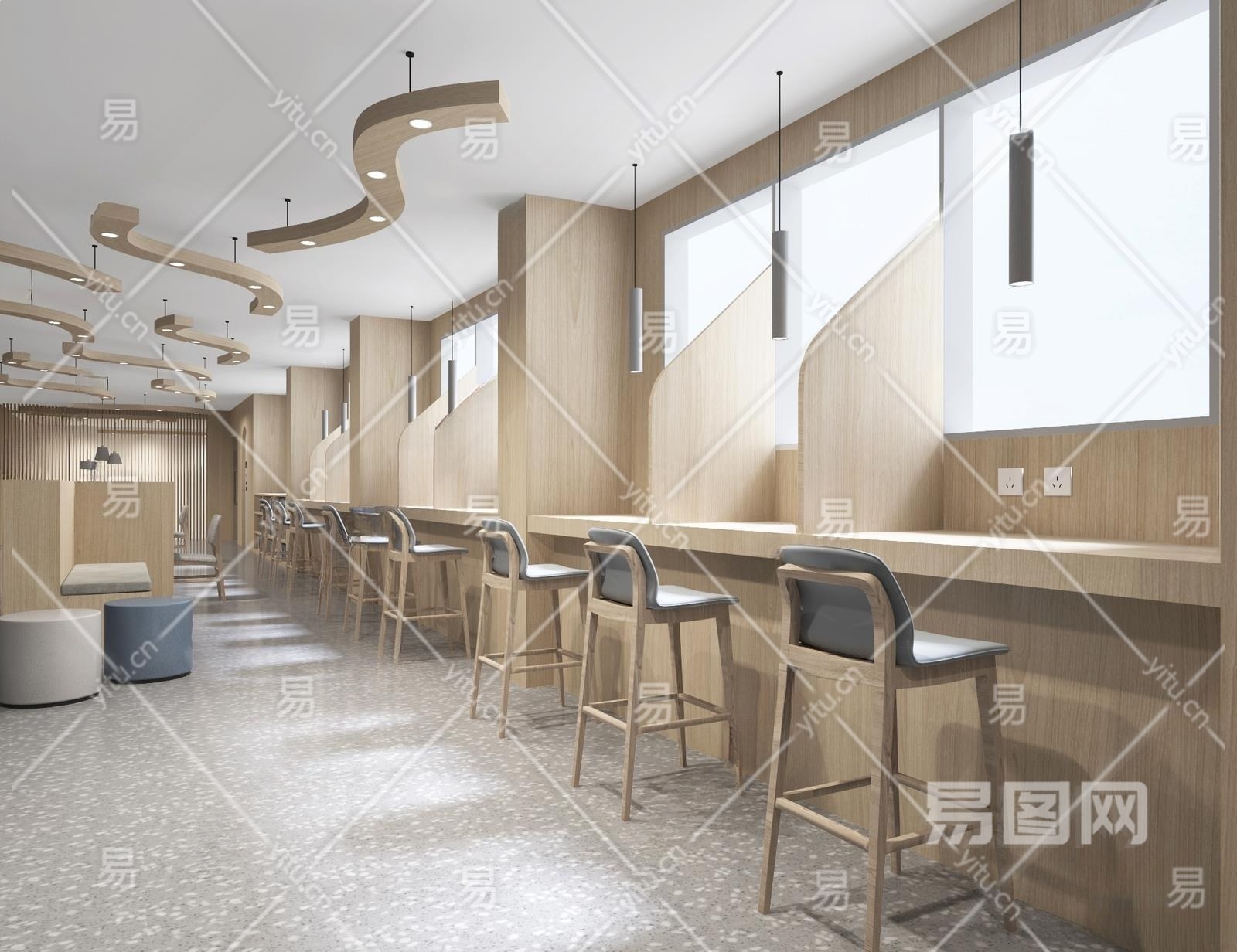 现代图书馆阅读区3D模型下载