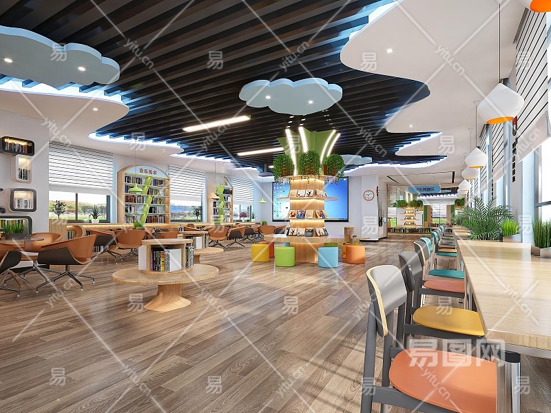 现代图书馆阅读区3D模型下载