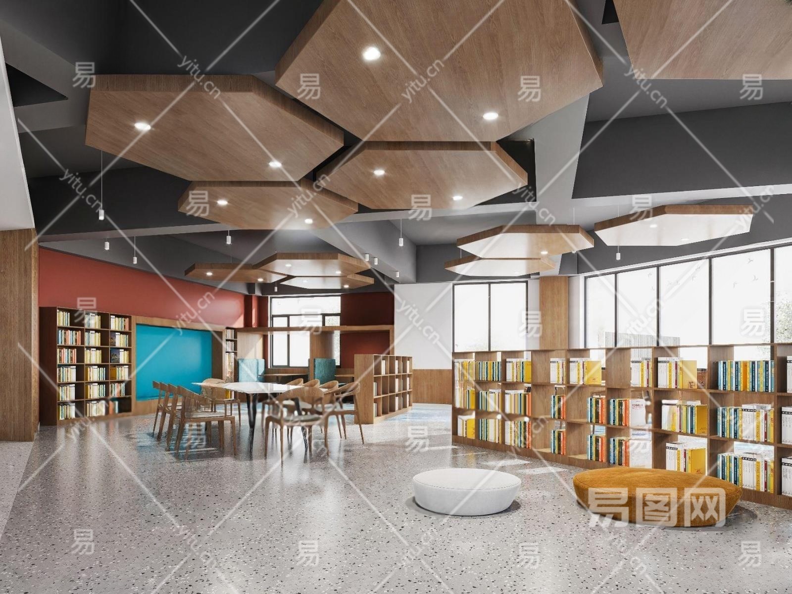 现代图书馆阅览室3D模型下载