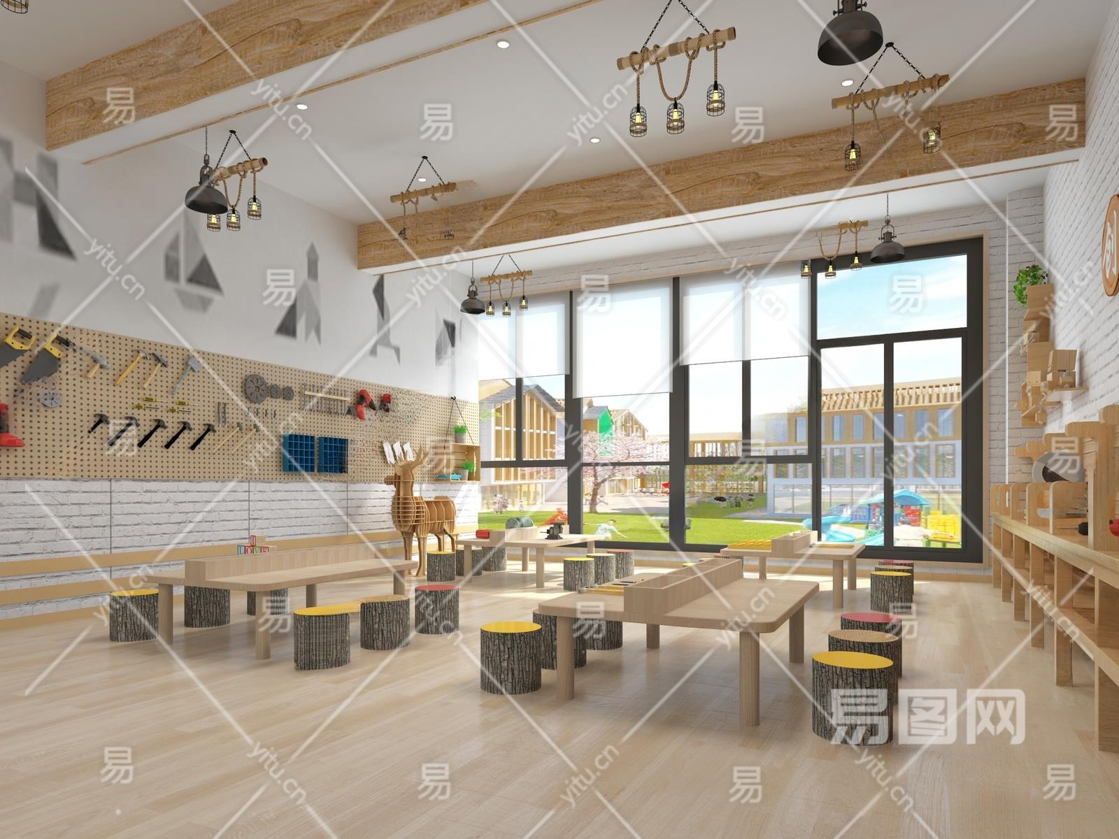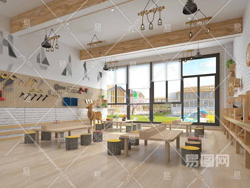 现代幼儿园劳技教室3D模型下载