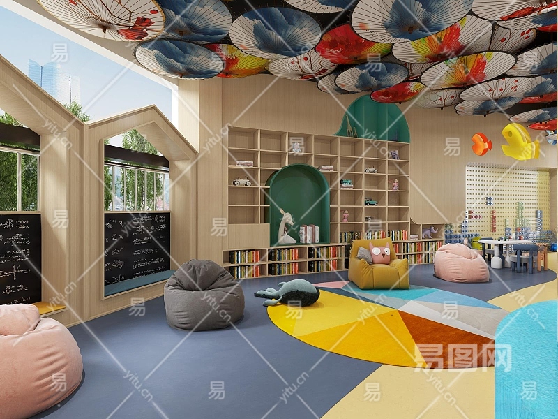 现代幼儿园儿童图书休息区3D模型下载