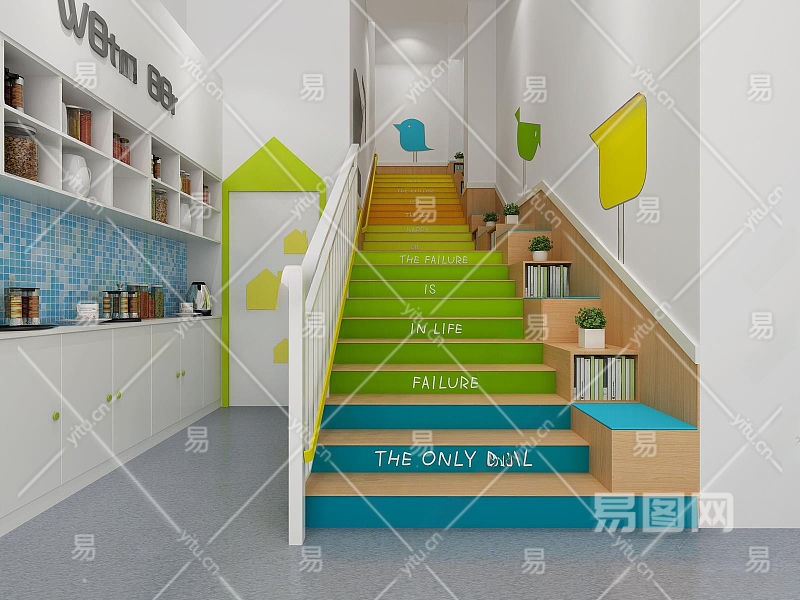 现代幼儿园楼梯间3D模型下载