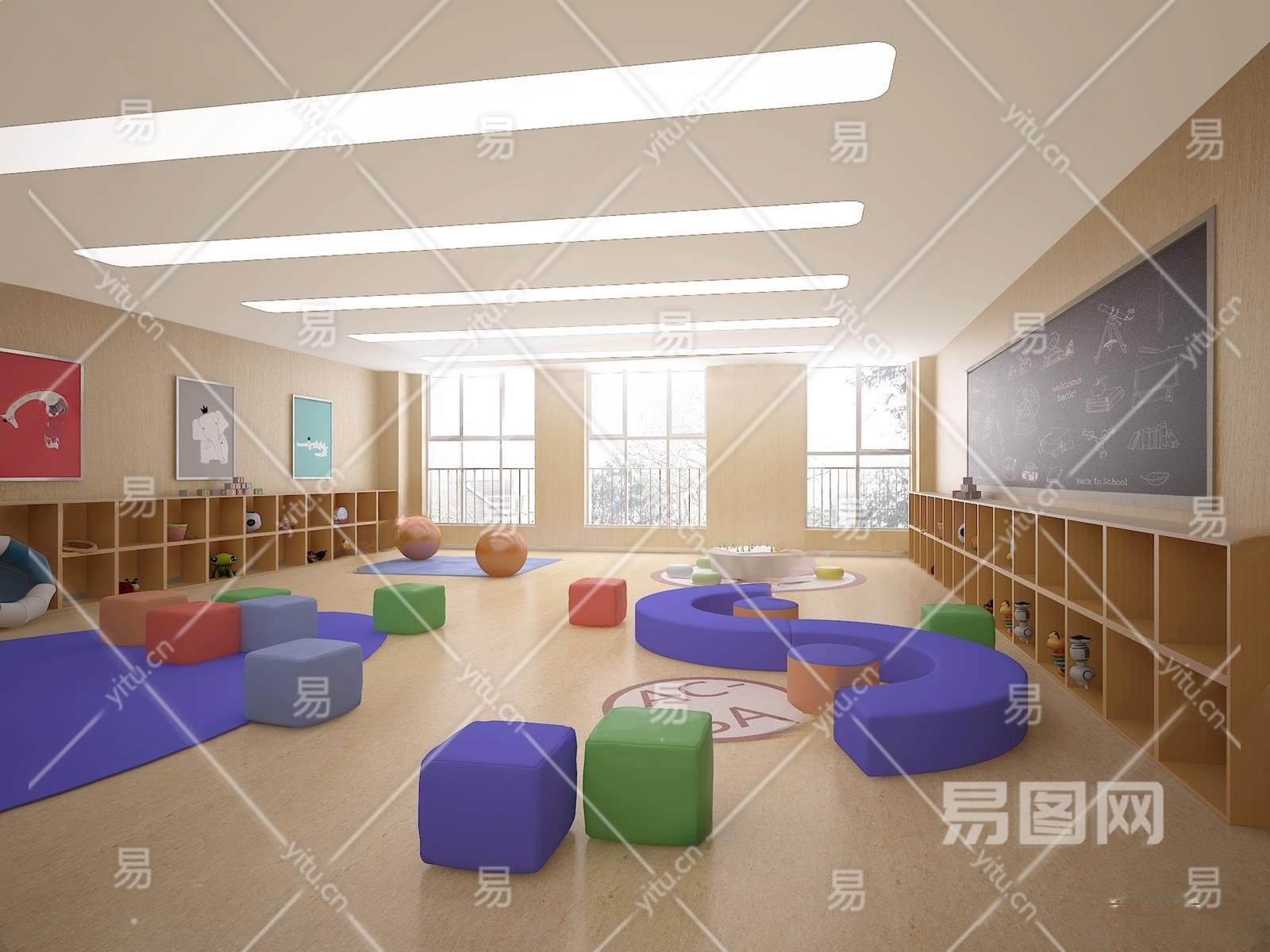 现代幼儿园教室3D模型下载