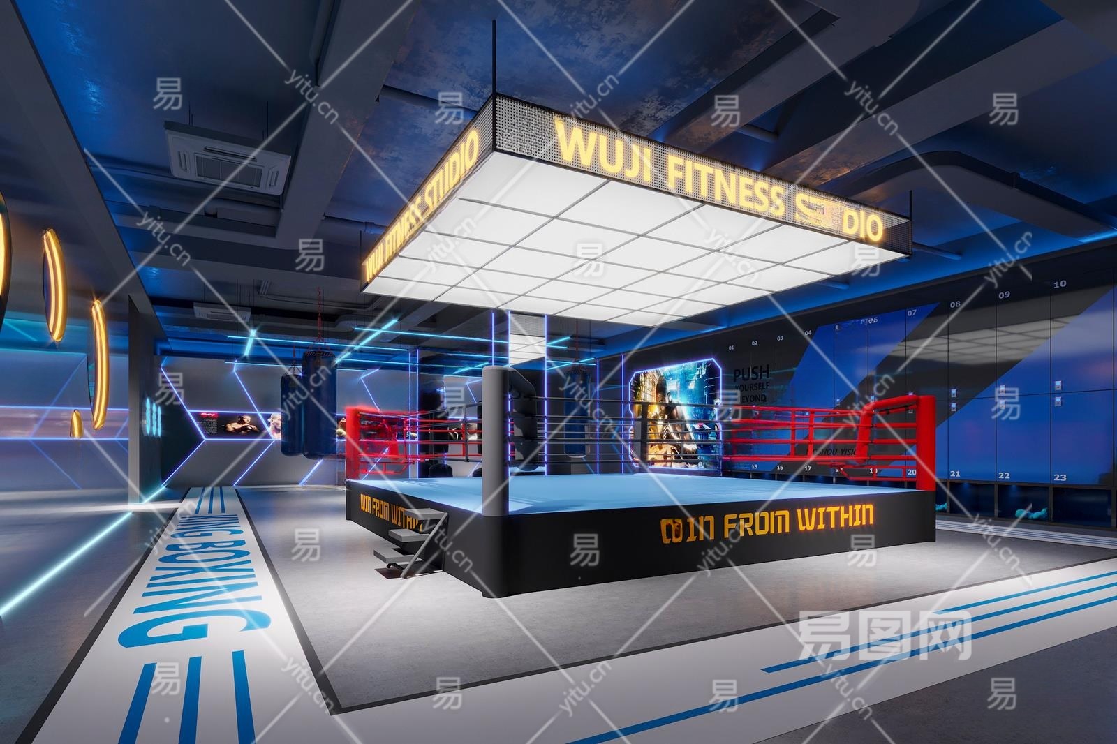 现代健身房搏击台3D模型下载