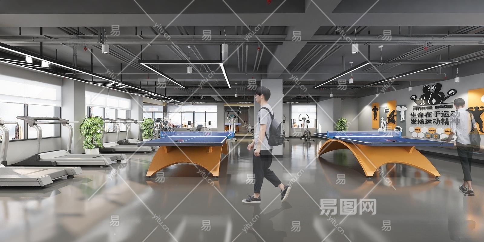 工业风健身房3D模型下载