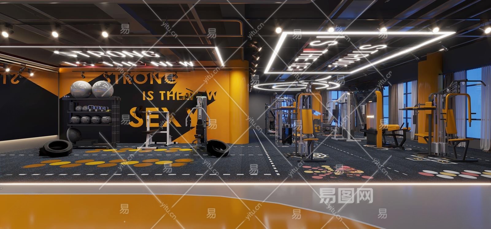 工业风健身房3D模型下载
