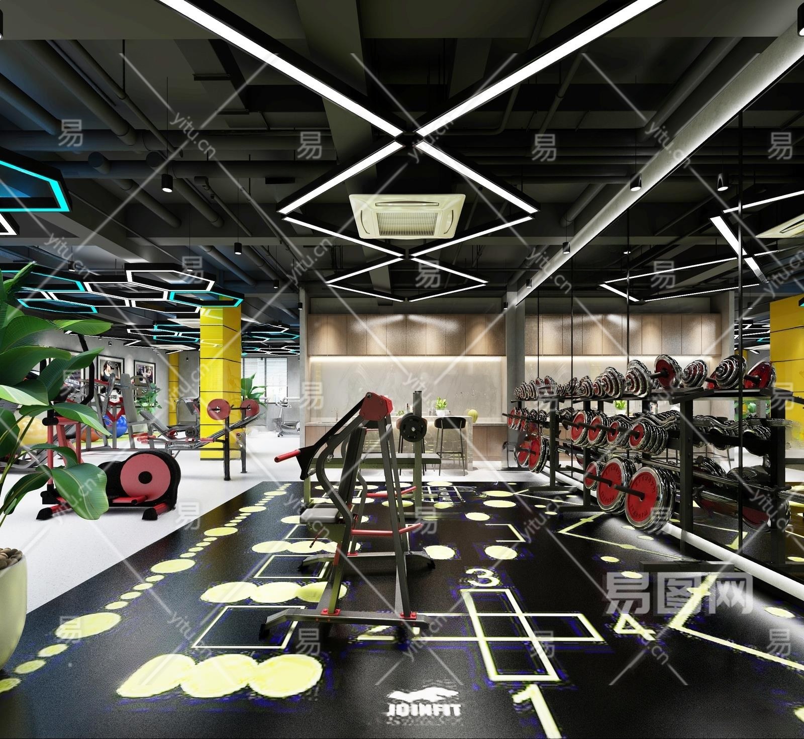 工业风健身房3D模型下载