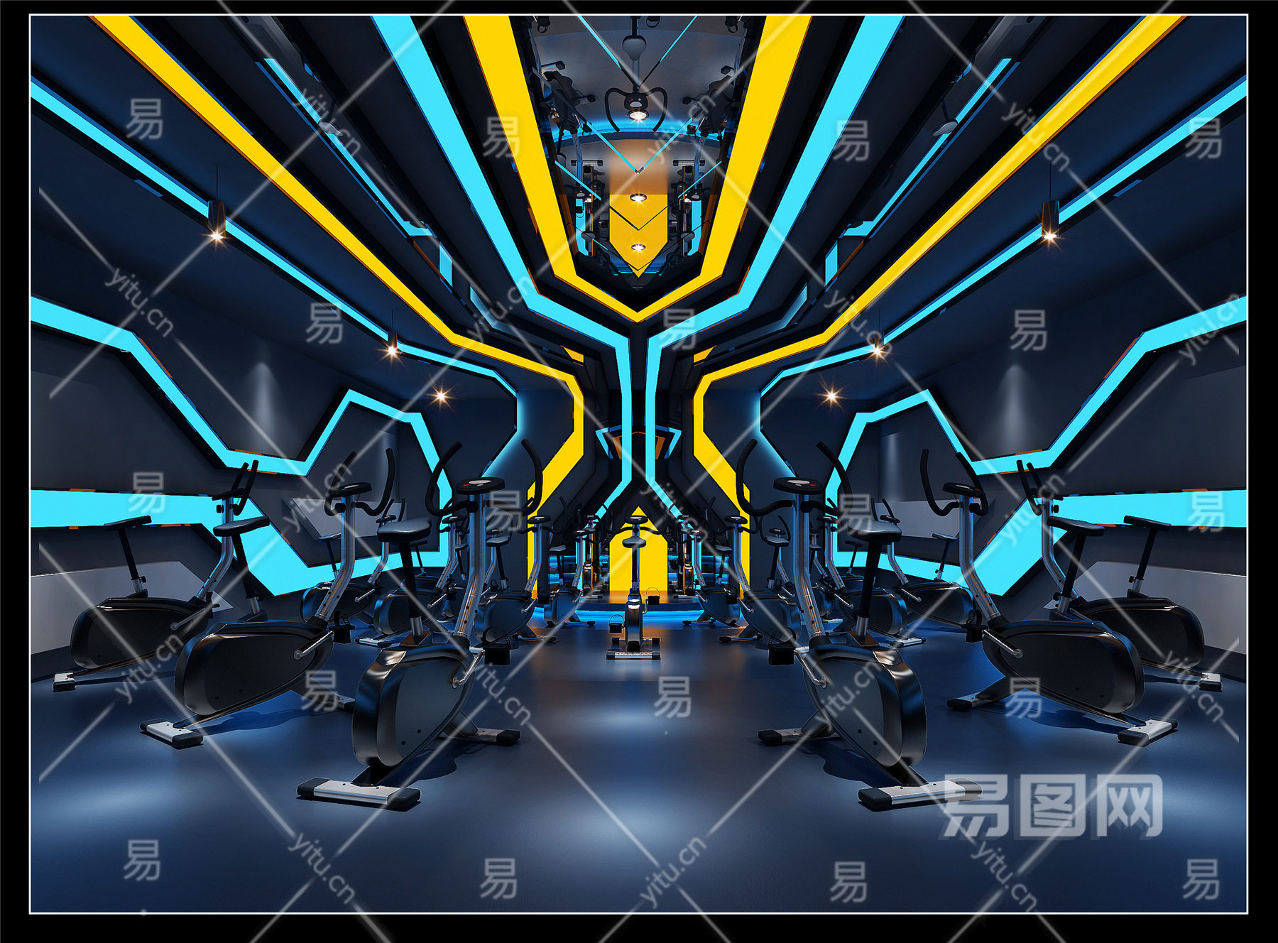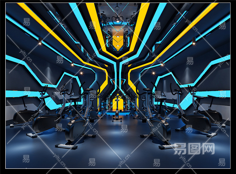 现代动感单车房健身房 单车 灯带