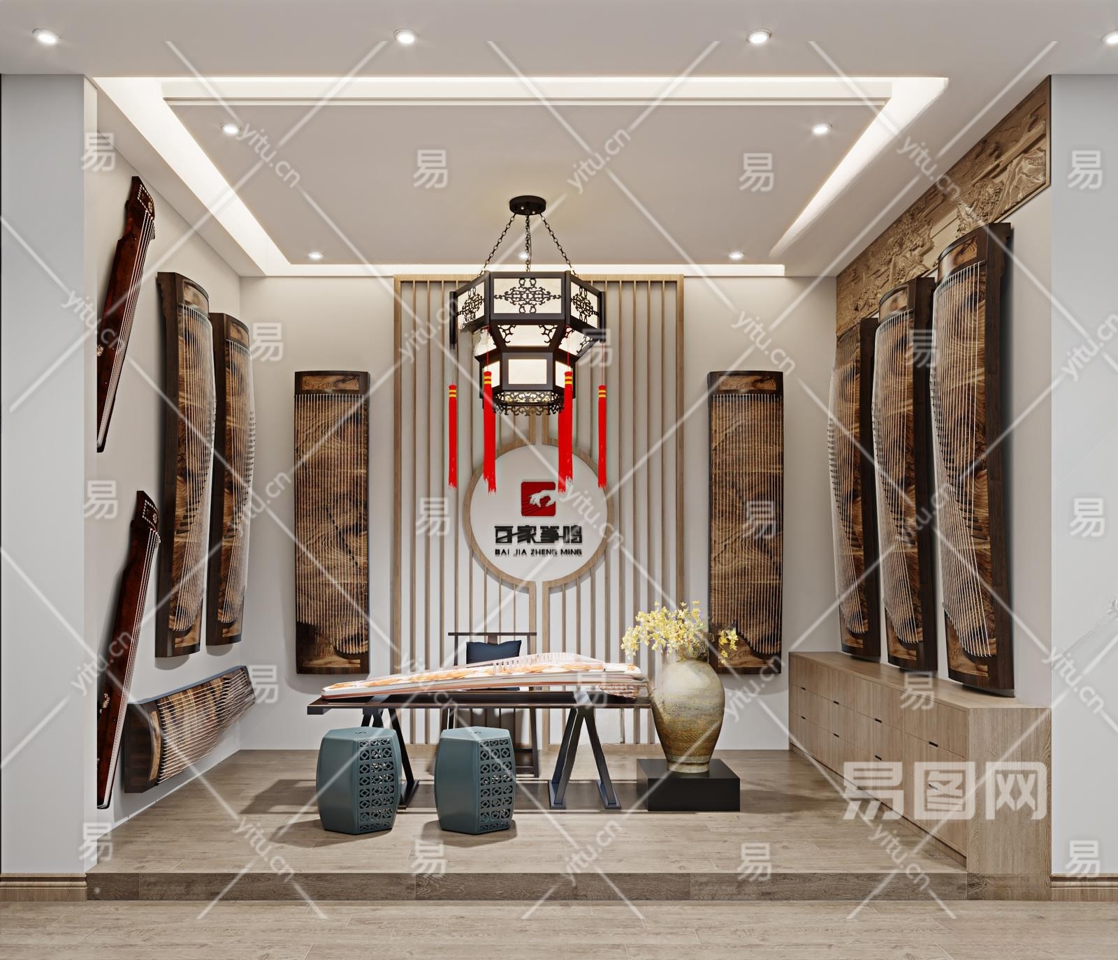 现代古筝教室3D模型下载