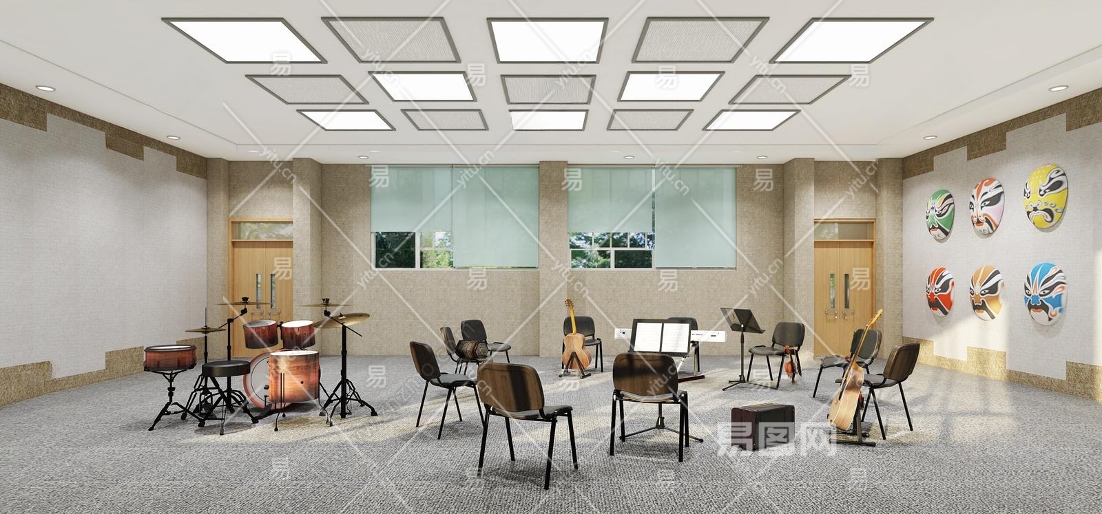 现代高中音乐教室3D模型下载