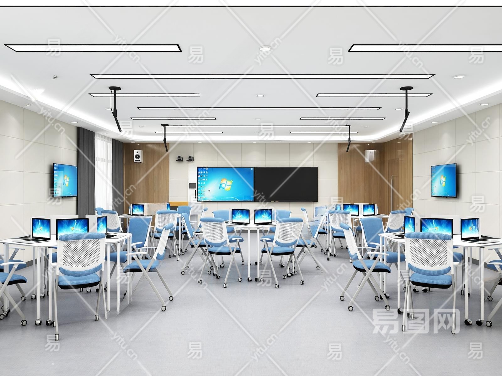 现代教室3D模型下载