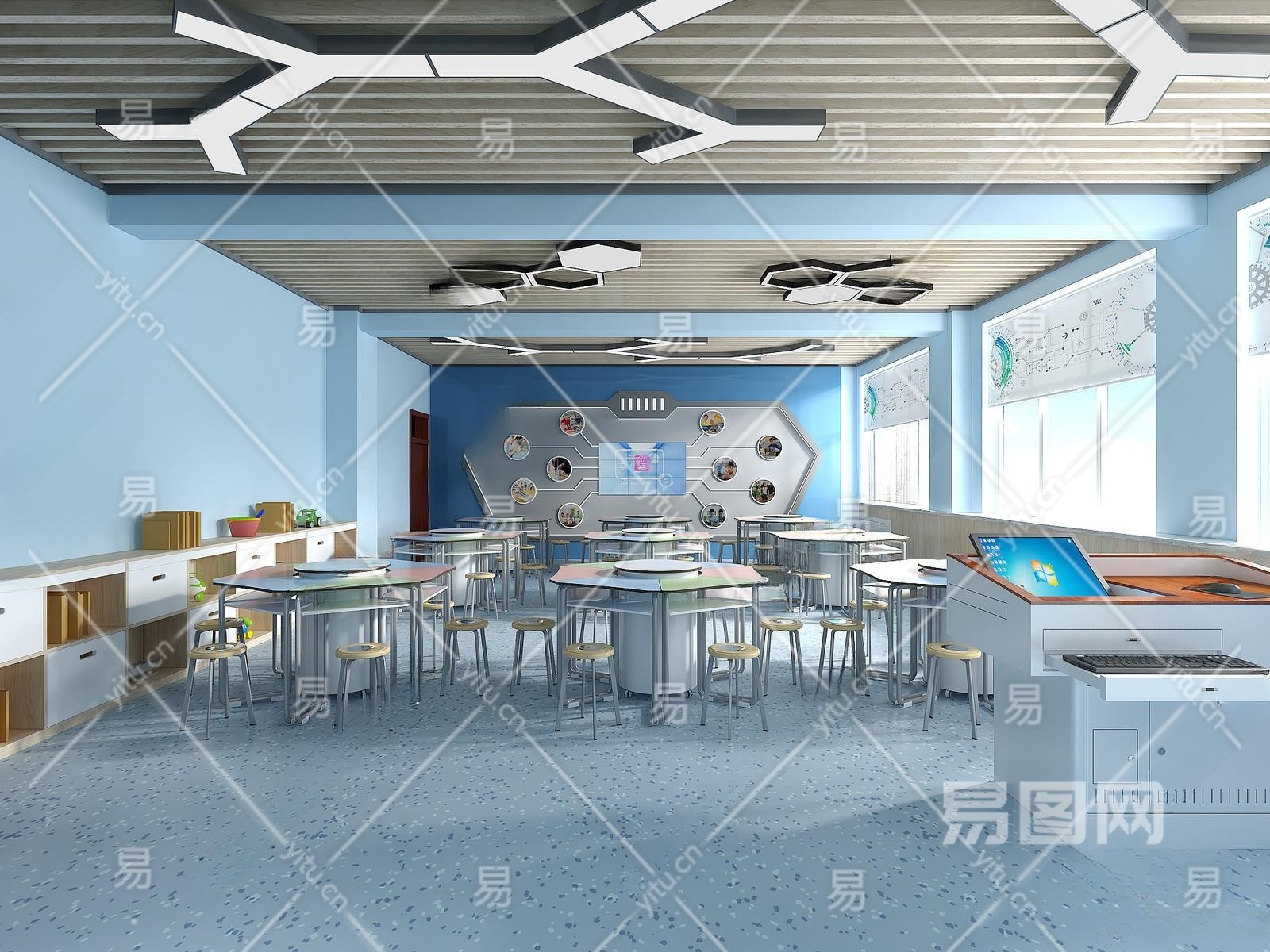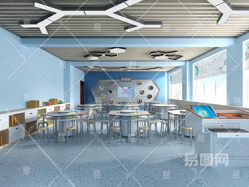 现代教室3D模型下载