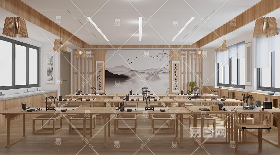 新中式书法教室3D模型下载