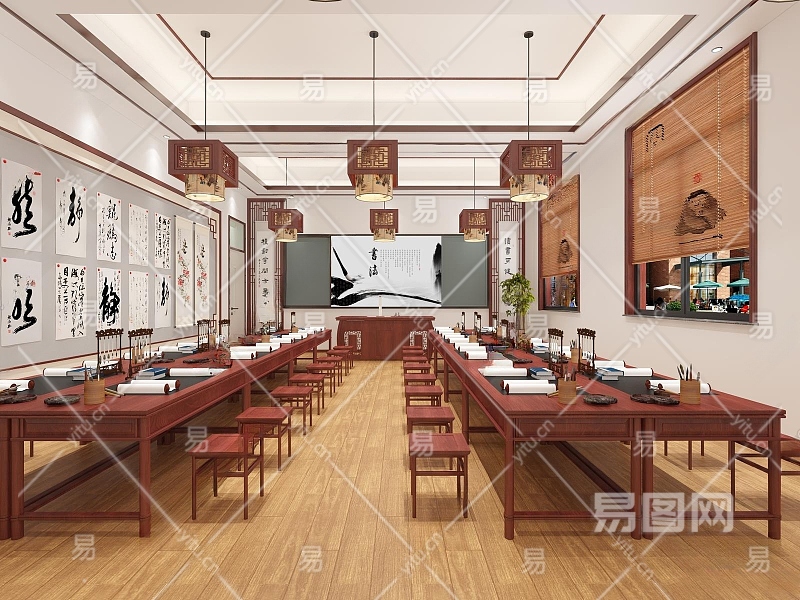 新中式书法教室3D模型下载