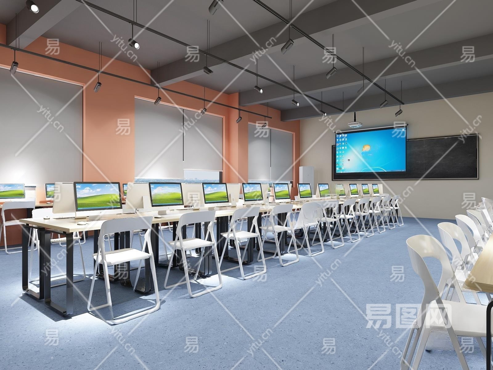 现代多媒体电脑机房3D模型下载