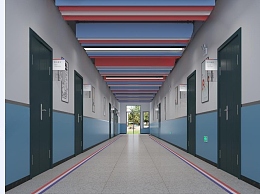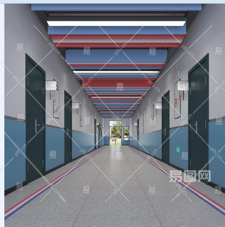 现代学校走廊安全出口3D模型下载