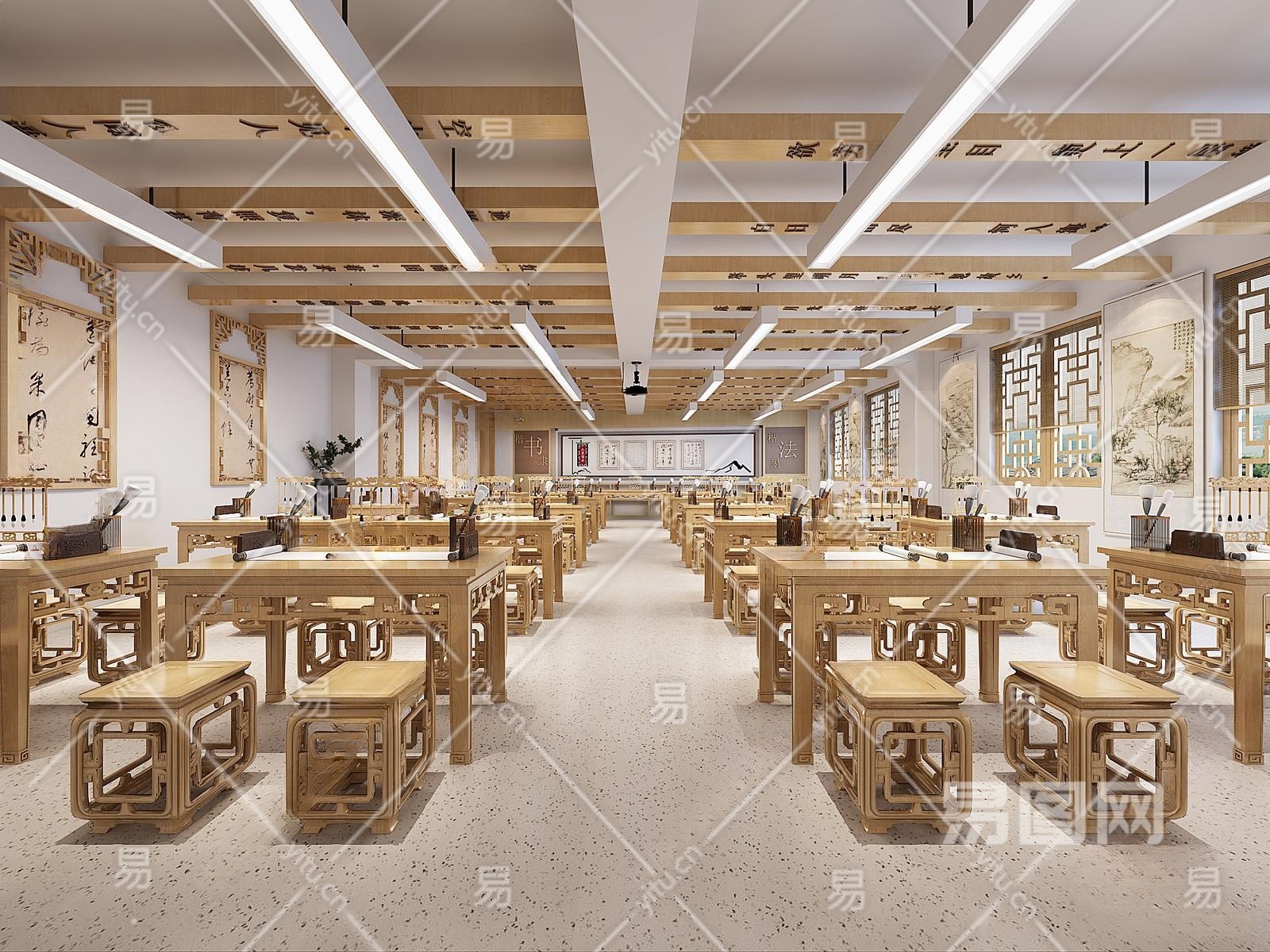 中式书法教室3D模型下载