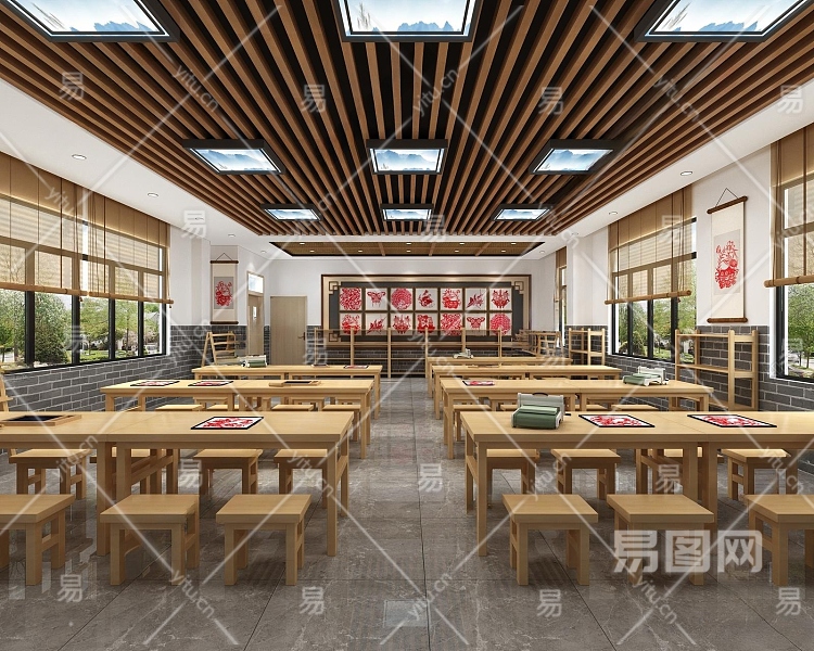 现代非遗纸艺教室3D模型下载