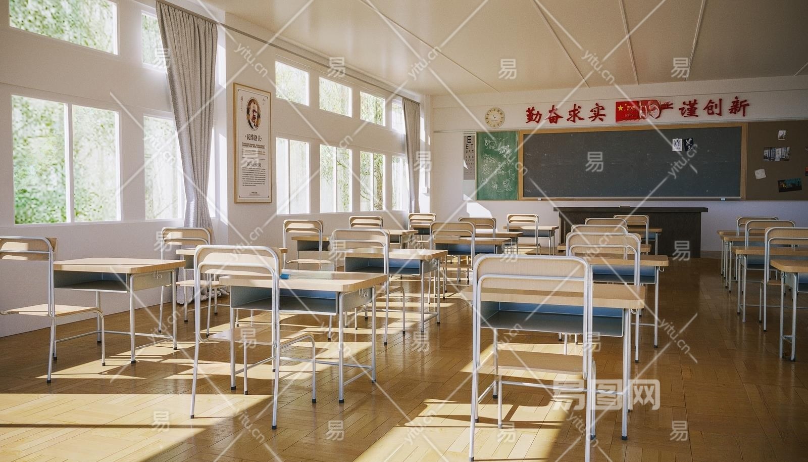 现代教室3D模型下载