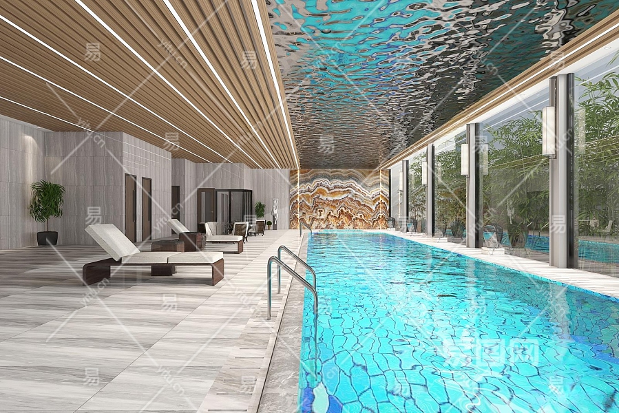 现代游泳馆3D模型下载