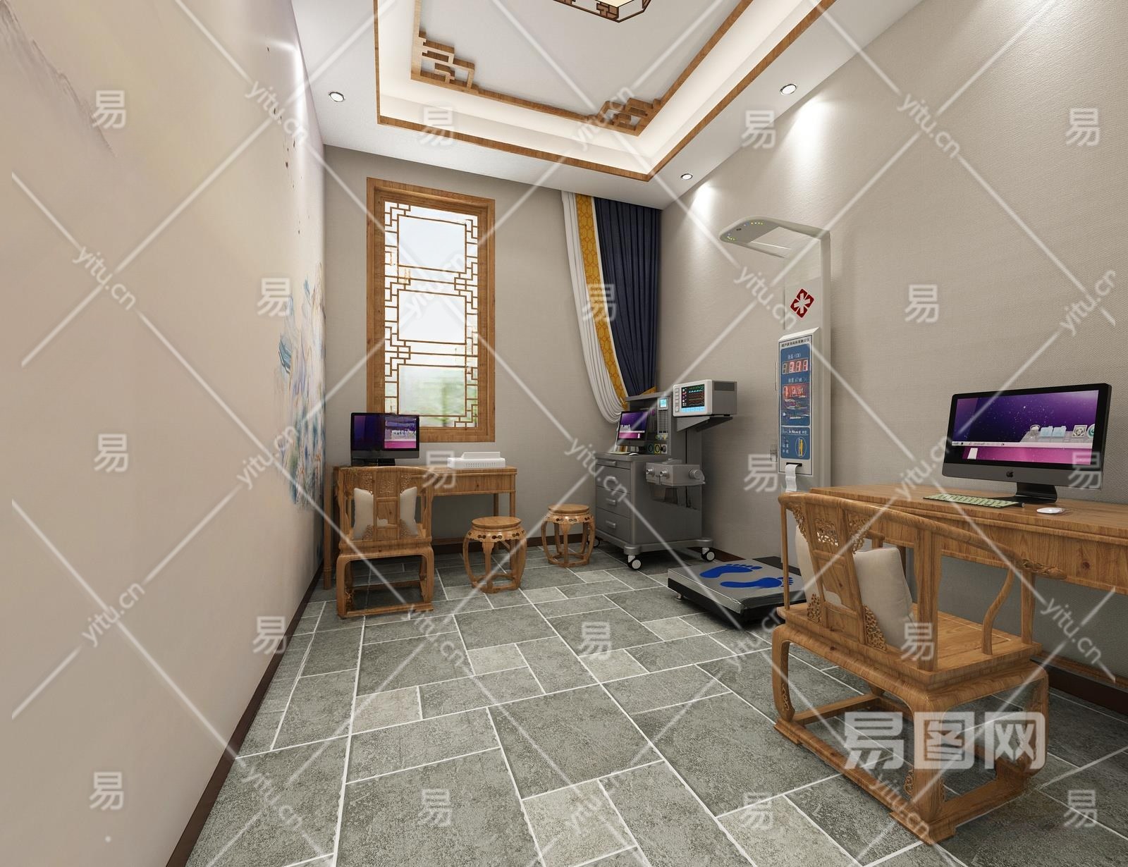 中式体检室3D模型下载