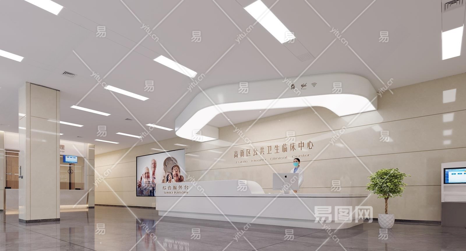 现代医院门诊大厅3D模型下载
