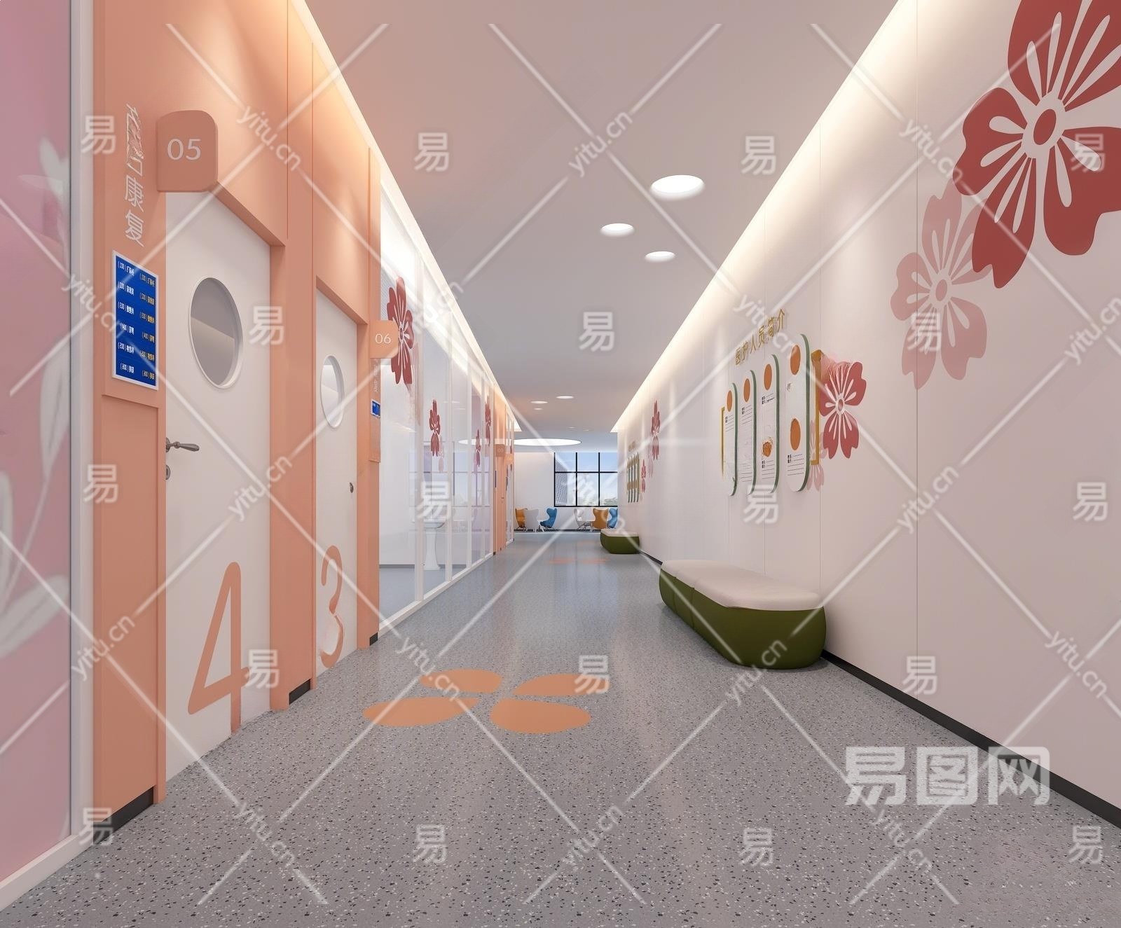现代妇幼保健院过道3D模型下载