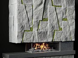 现代石墙壁炉