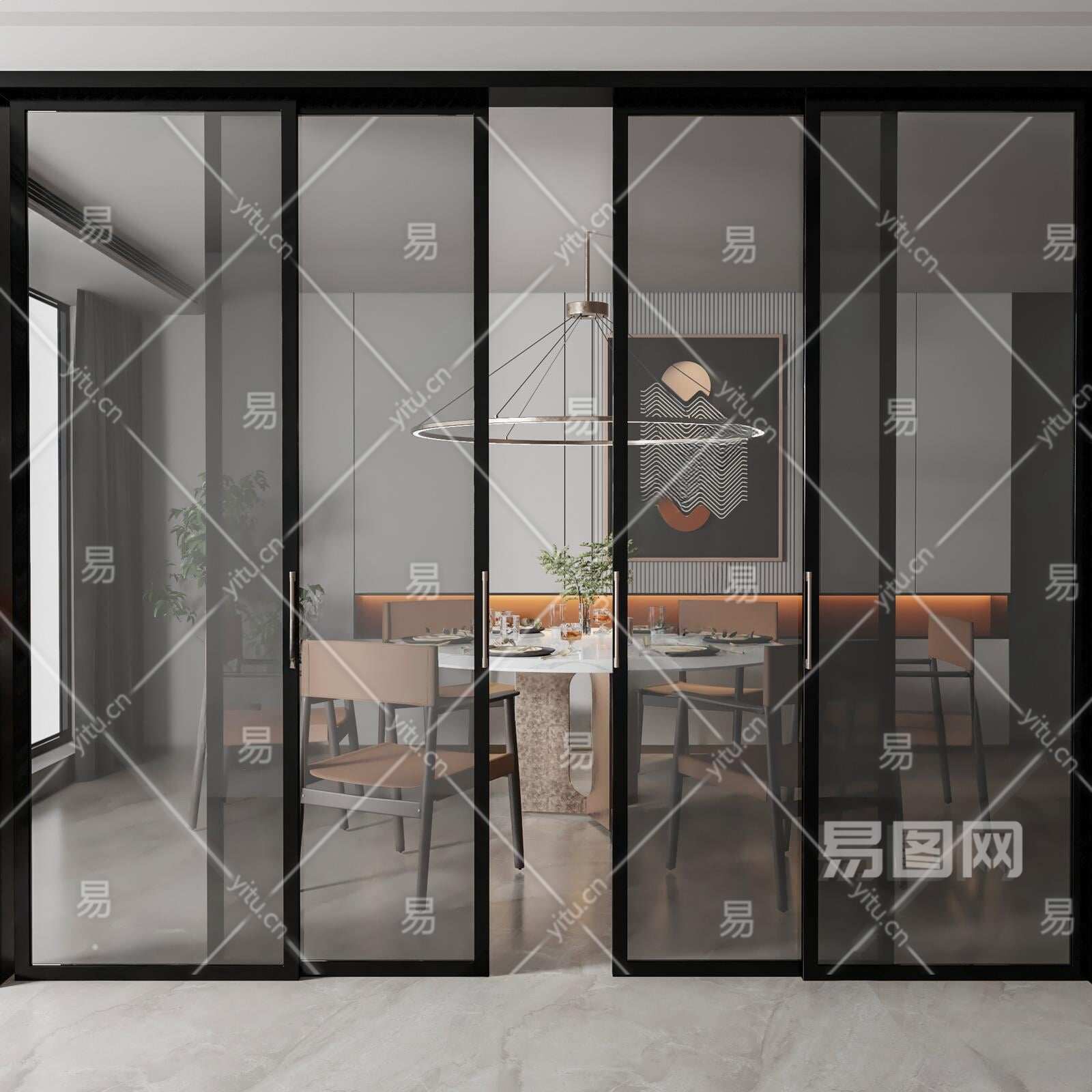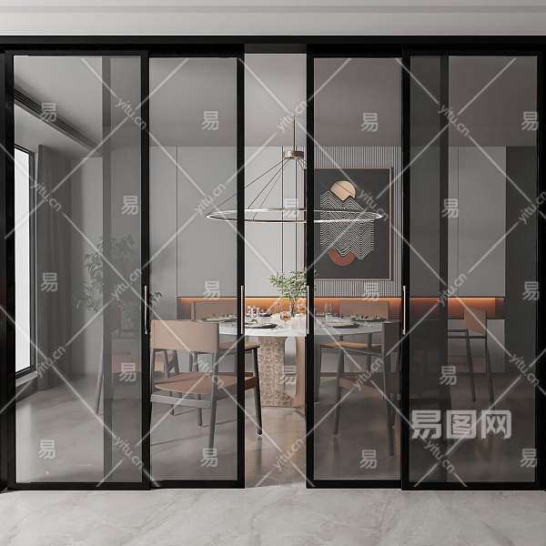现代厨房玻璃推拉门3D模型下载