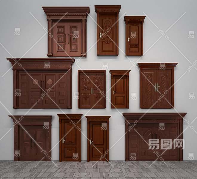 中式实木大门3D模型下载