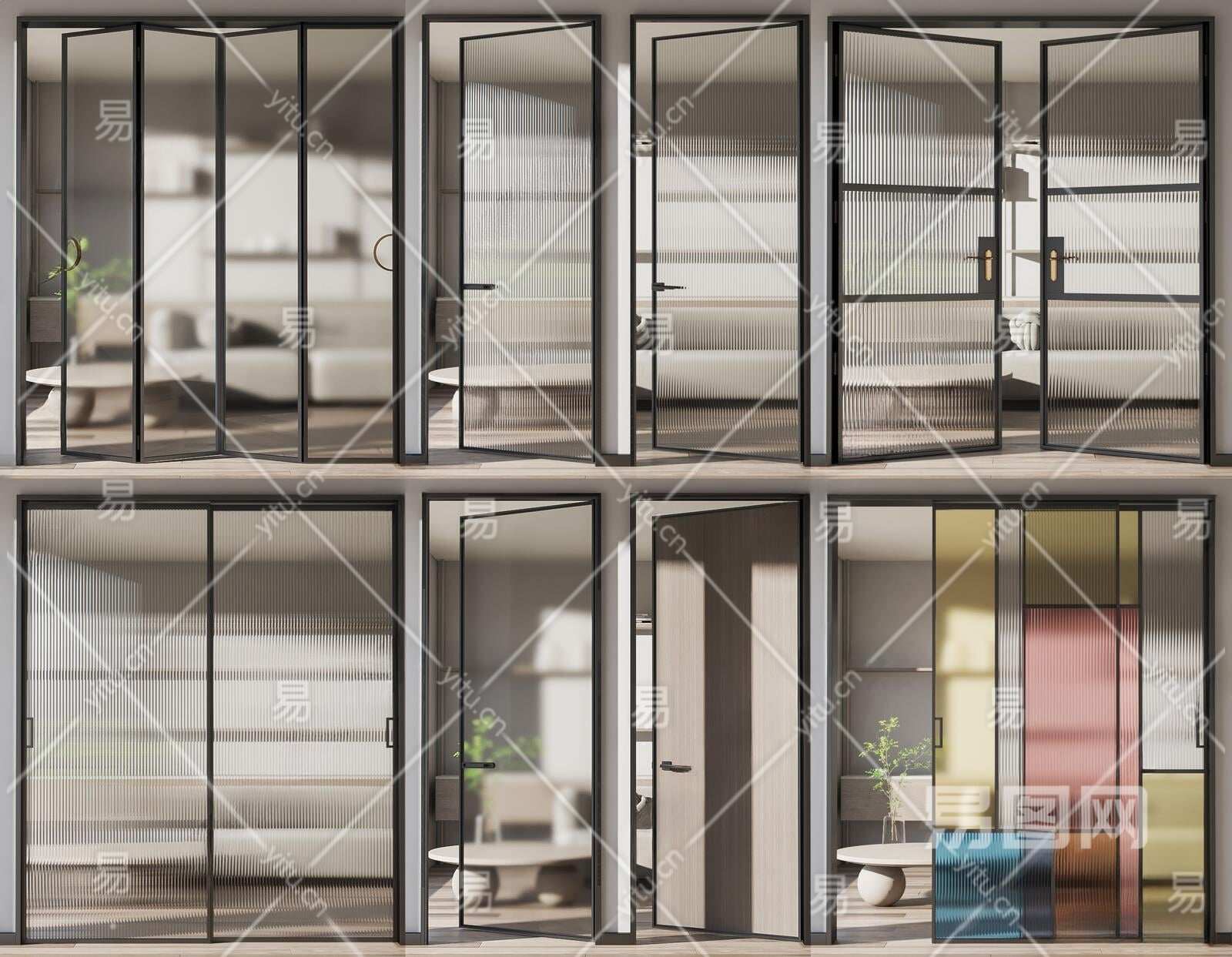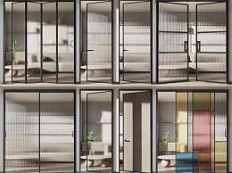 现代玻璃门组合3D模型下载