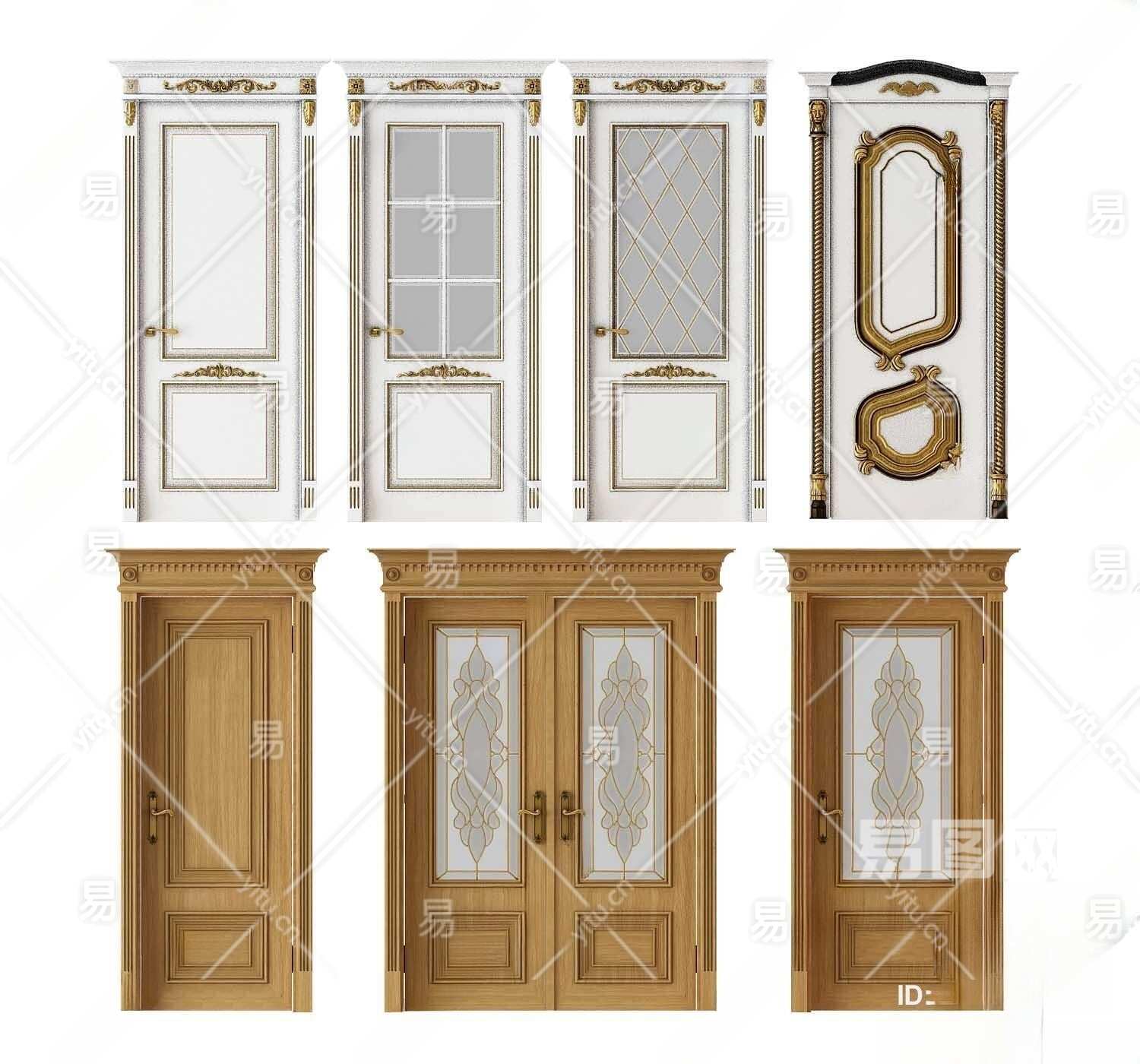 美式实木彩绘玻璃艺术玻璃木门3D模型下载