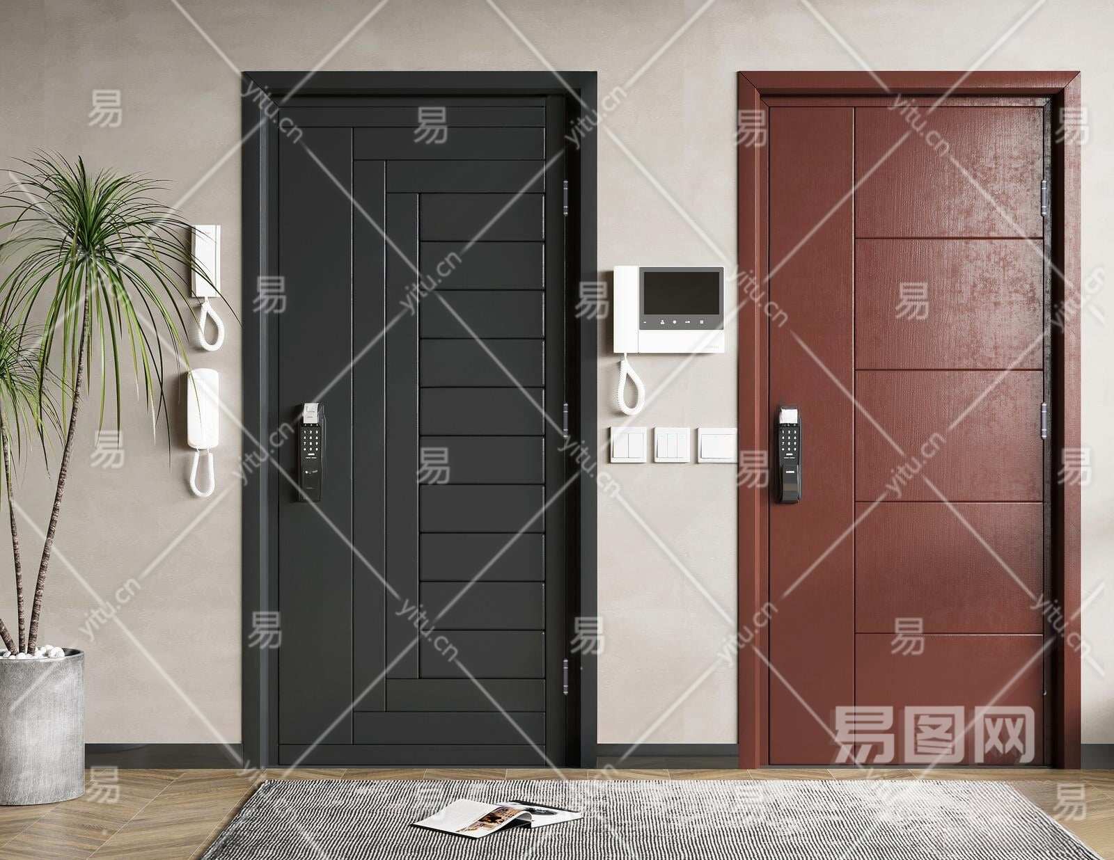 现代单开门3D模型下载
