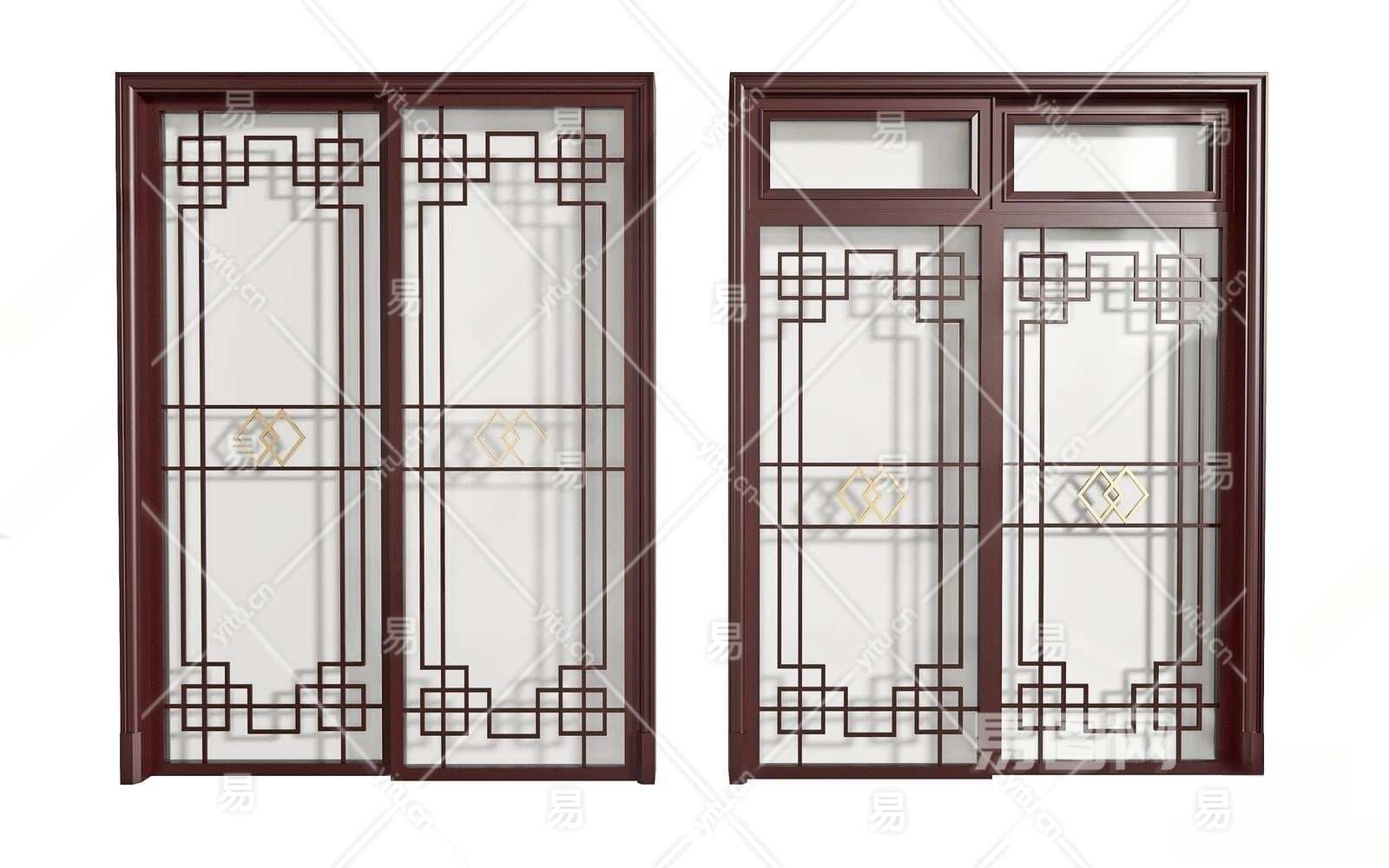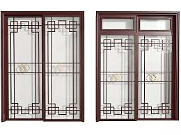中式推拉门3D模型下载
