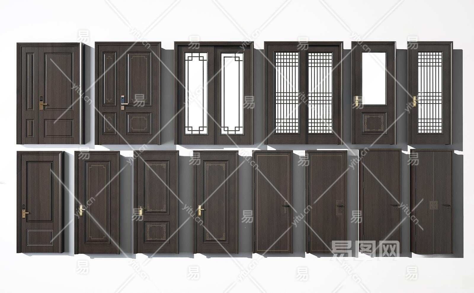 新中式门组合3D模型下载