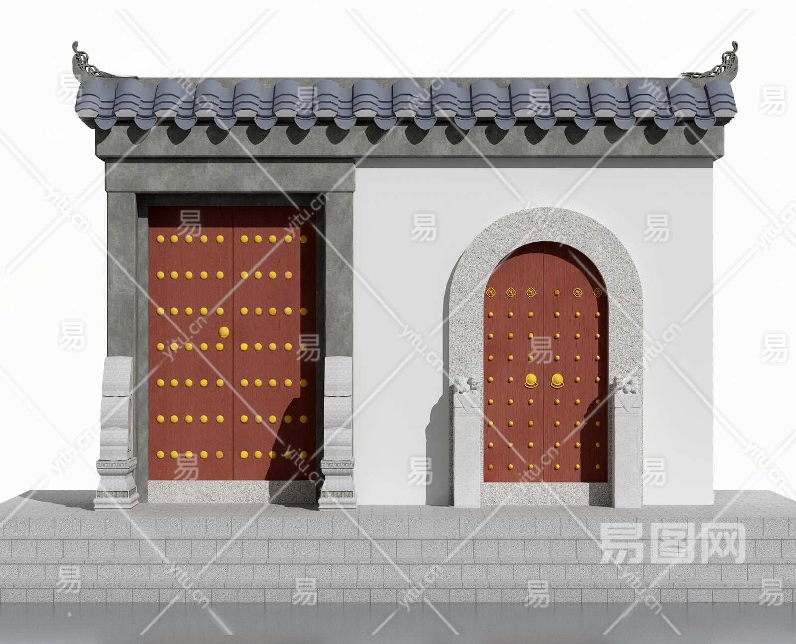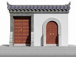 中式铜钉门3D模型下载
