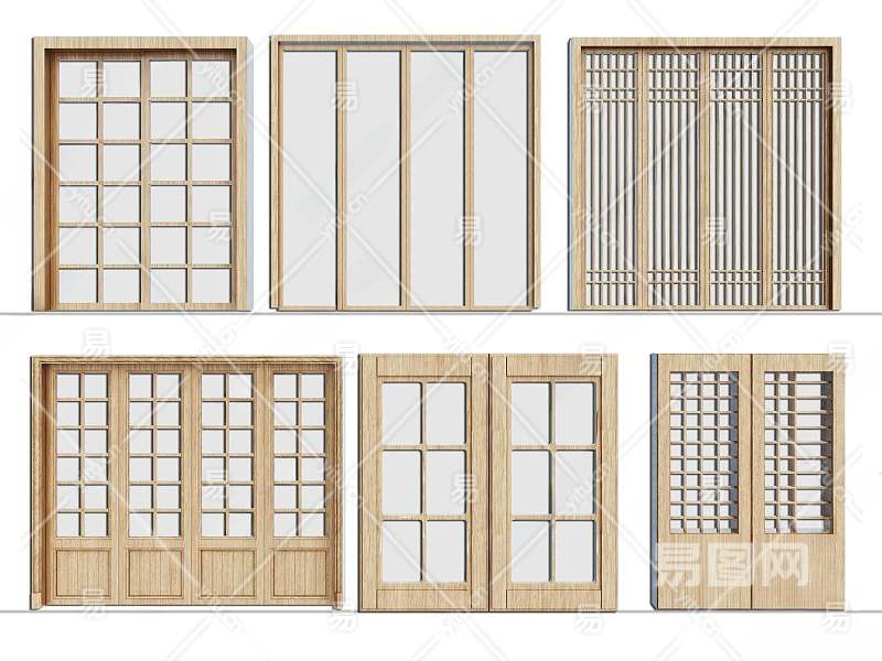 日式推拉门3D模型下载