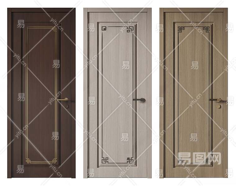 新中式单开门3D模型下载