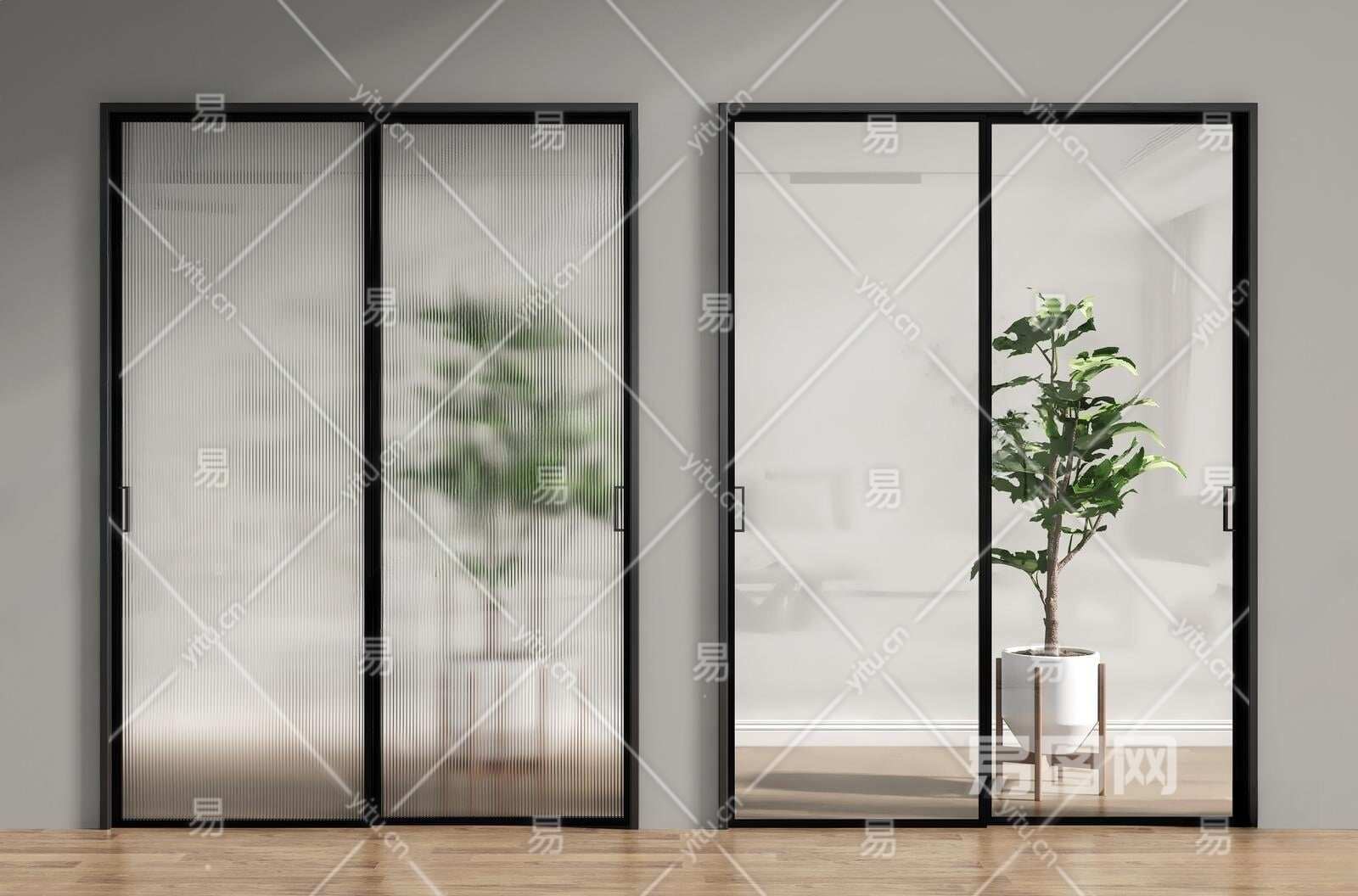 现代玻璃推拉门3D模型下载