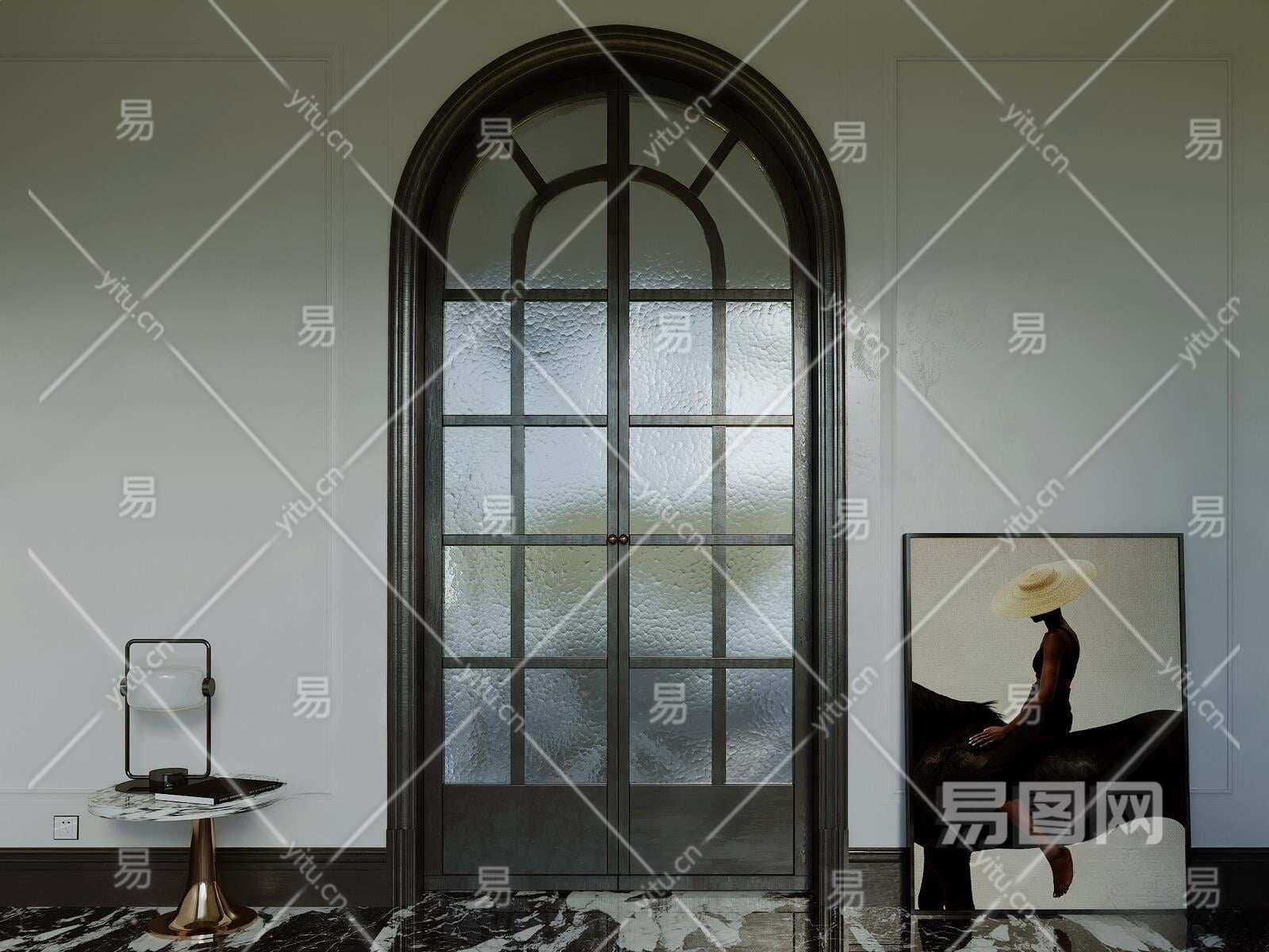 美式玻璃双开门3D模型下载