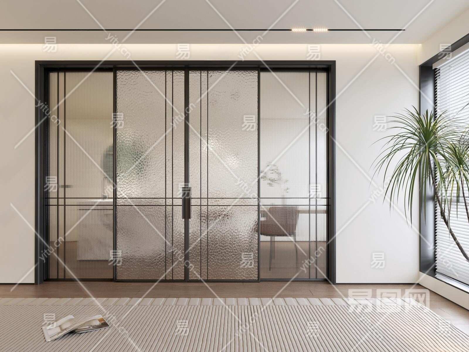 现代玻璃推拉门3D模型下载
