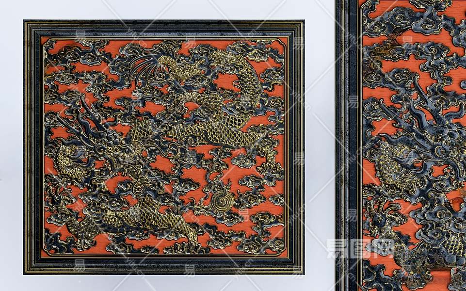 中式龙纹浮雕3D模型下载